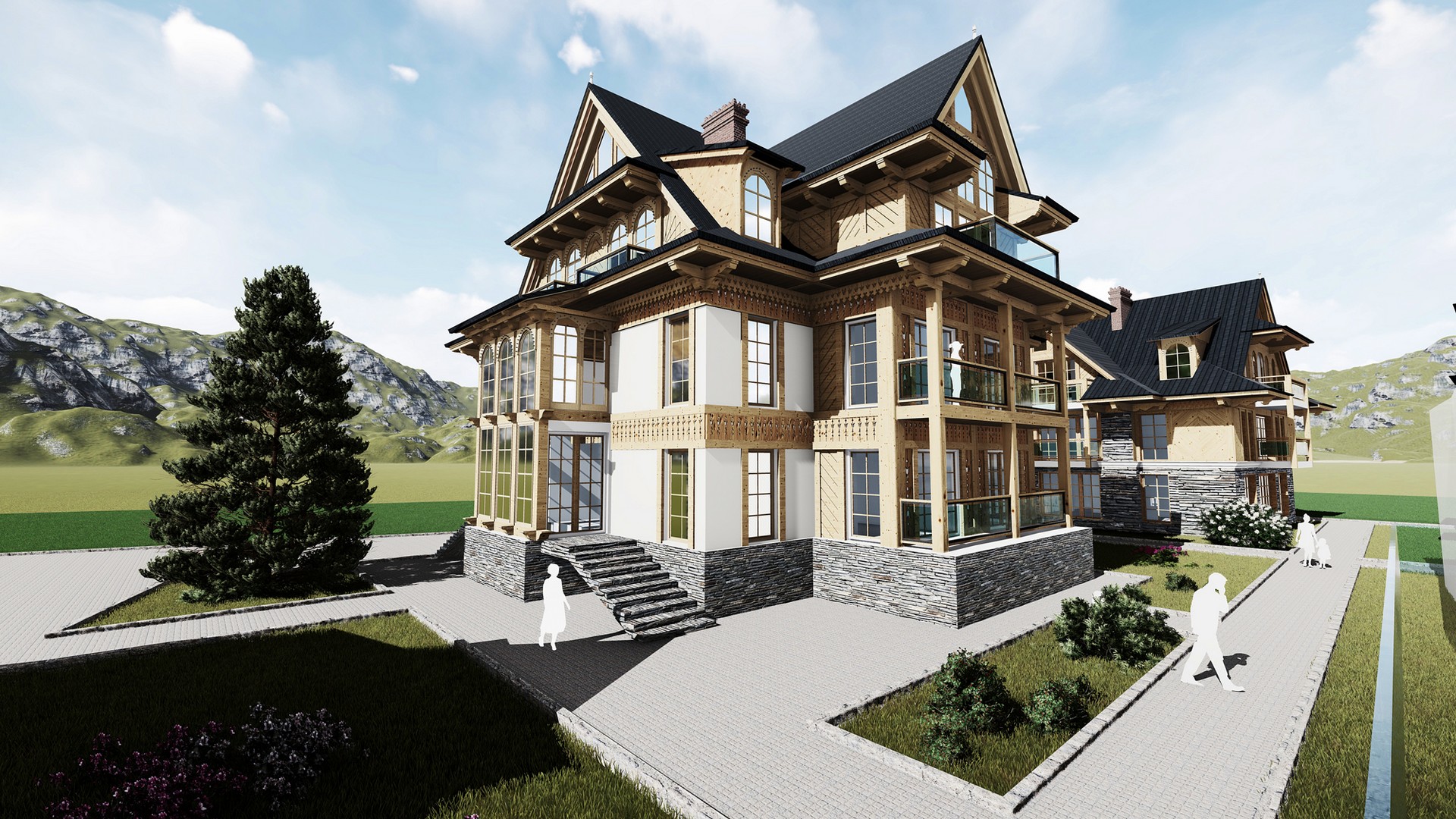 Niniejsze wizualizacje mają charakter poglądowy. Wygląd budynku oraz zagospodarowanie terenu mogą ulec zmianie na etapie realizacji inwestycji.